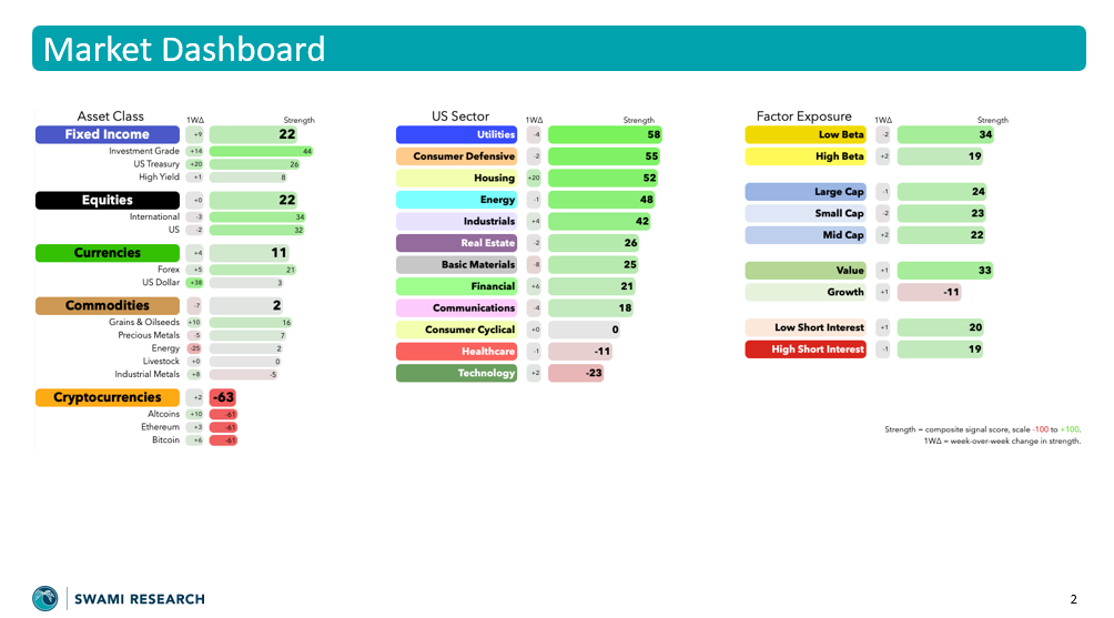 Last week was a classic example of why we separate signal strength from headline performance. SPY bounced, growth showed up, and value lagged — but the broader Swami backdrop still looks constructive: equities are steady, gold is behaving like a bull again (with volatility falling), and bonds are getting close to a setup worth paying attention to.