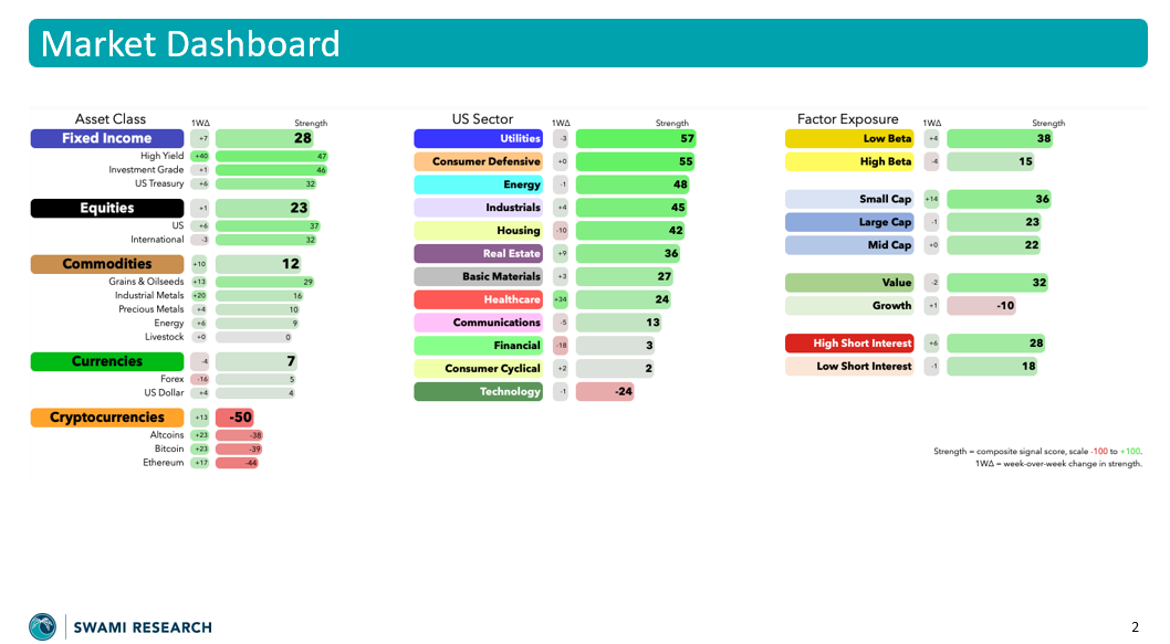 This week the signals got more constructive again — not with a broad “risk-on” stamp, but with targeted buy signals in places that tend to work when markets are choppy: small cap value and high yield. Meanwhile, Swami All-Equity continued doing its job — holding up while the index slipped, and keeping the year-to-date gap wide.