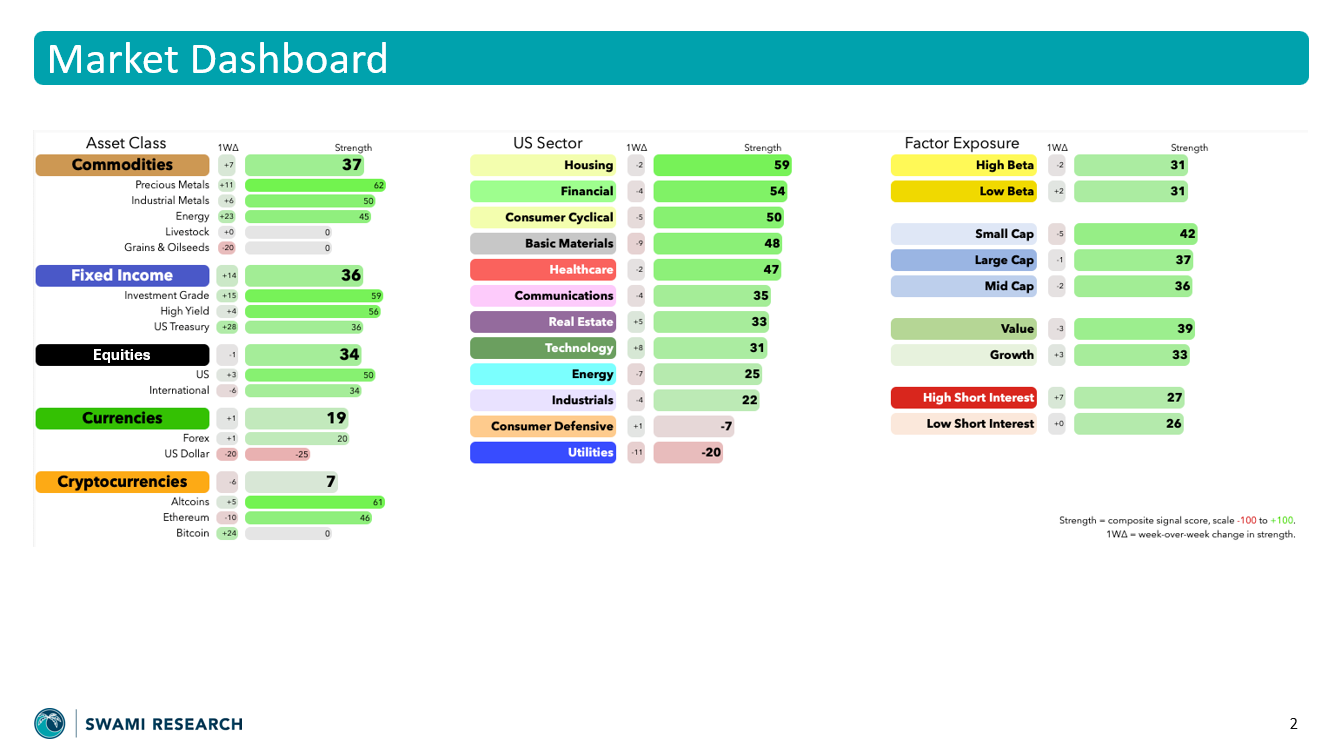 Last week we highlighted TLT (iShares 20+ Year Treasury Bond ETF) breaking into a bullish trend — and that call delivered, with TLT gaining +1.6% and strength showing across the entire treasury bond ETF complex. Signal momentum in fixed income continues to firm, though we’re still waiting on the all-important “higher low” confirmation. Within our Swami All-Equity Systematic Portfolio, XLE (Energy), GDX (Gold Miners), TSLA (Tesla), and AMZN (Amazon) remain as top-ranked signals from last week’s line-up.